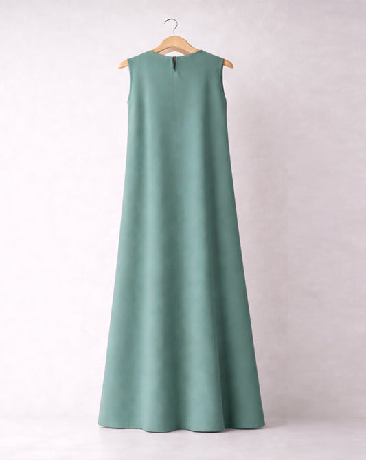 فستان طويل بيسيك بدون أكمام لون جنزاري