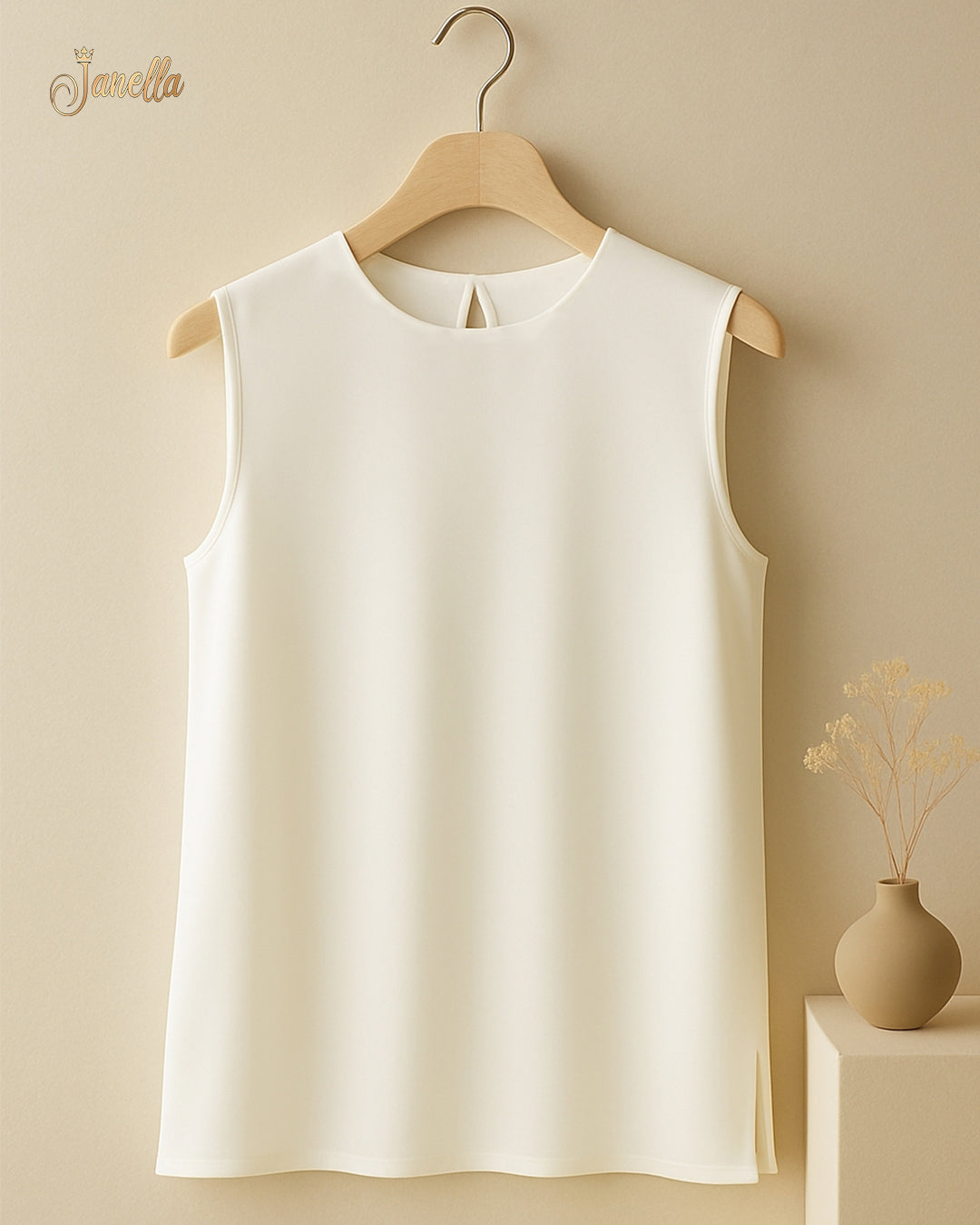 إطلالة كلاسيكية لا غنى عنها مع بلوزة البيسك الكت بدون اكمام . مصنوعة من خامة الروزالين المستوردة الناعمة عالية الجودة تمنحك الراحة طوال اليوم. التصميم البسيط يجعلها مثالية للتنسيق مع مختلف القطع، سواء للإطلالات الكاجوال أو الرسمية.