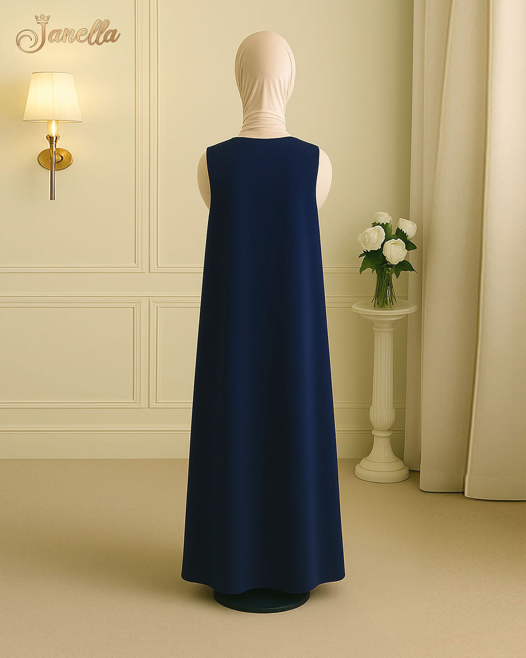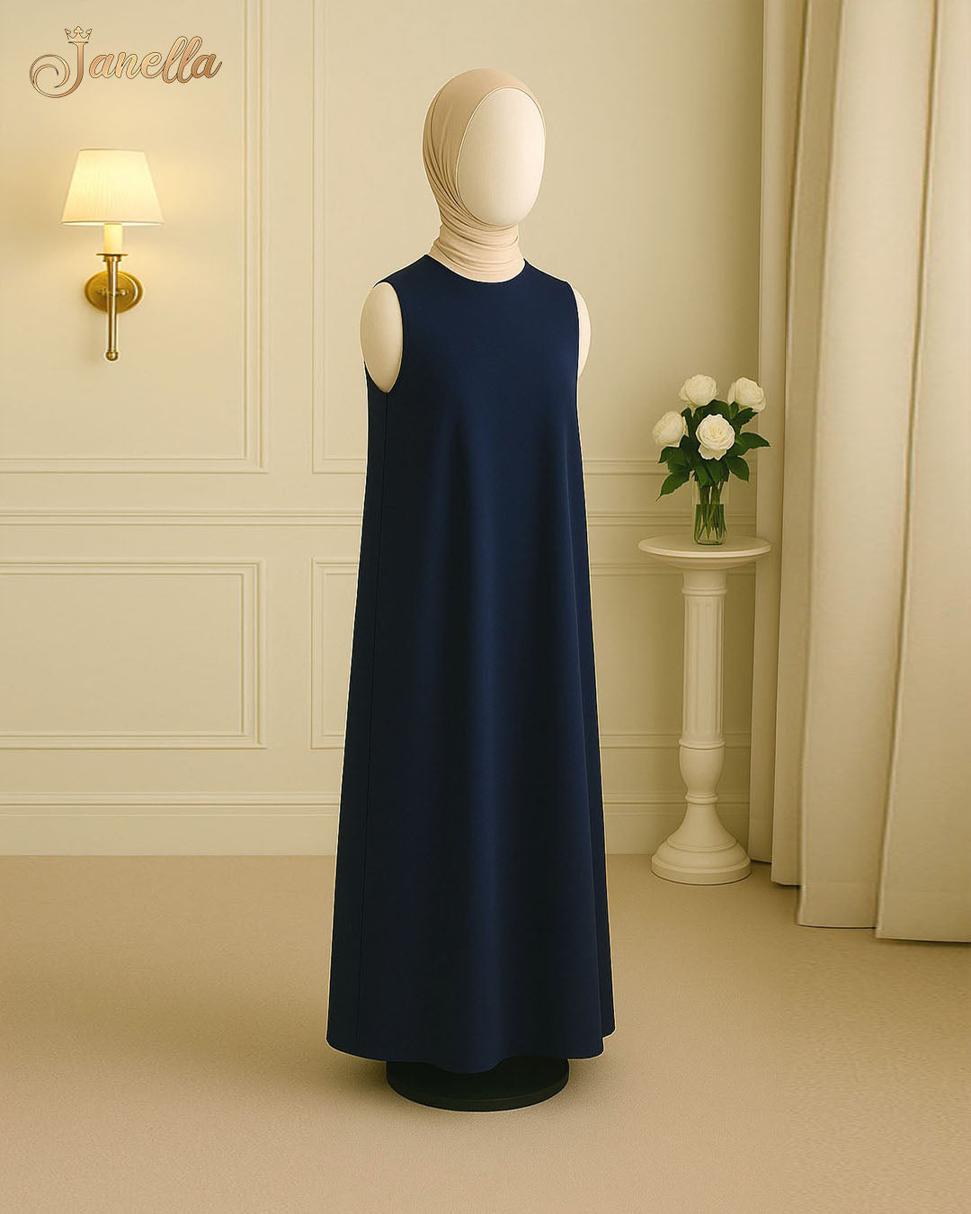 فستان طويل بيسيك بدون أكمام لون كحلي